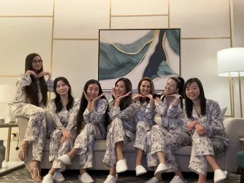 We all changed into our matching satin PJs, gathered in our beautiful suite, and indulged in some ultimate comfort food—gourmet Shake Shack burgers. Since not everyone on the trip knew each other beforehand, I designed conversation cards in Canva to help break the ice. The cards had a mix of fun and thought-provoking questions, ranging from lighthearted icebreakers to spicy and even deep, soulful topics.